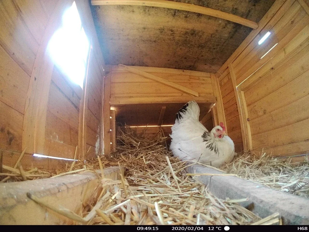 I’ve been a bit concerned that something might be either eating or stealing Blucia-the-hen’s eggs. After laying beautifully for a couple of weeks she has stopped. I have no idea why. She looks perfectly healthy and shows no signs of being egg-bound. So I resorted to putting a nature camera in their house. The results are inconclusive. Blucia did not enter the house all day. Brighton-the-hen came in to lay. She was a bit disturbed by the camera, so had a good look and went out. But returned to lay another huge egg a short while later.