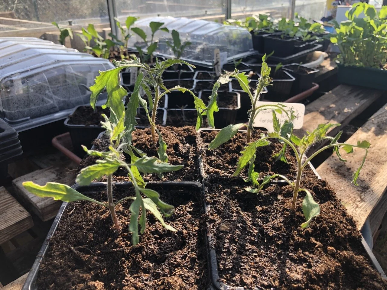 Potted on Dikaya Roza toms x 4, Amethyst Jewel toms x 4, Guker’s Special toms x 5, Beefsteak toms x 4 & Alice’s Dream toms x 8.